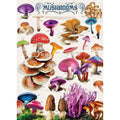 From the classic red-and-white Amanita to vibrant violet caps and golden chanterelles, this stunning collection showcases an incredible variety of mushrooms in vivid, lifelike detail. Each specimen is labeled and arranged like a vintage botanical chart, making this puzzle as educational as it is beautiful.