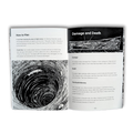 48 page, 5.8 x 8.3 inch (A5), black & white, saddle-bound zine w/ soft-touch cover and coated pages