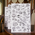 24 page, 5.5 x 85 inch, saddle-bound zine w/ 3 inventory pages in clear plastic envelope